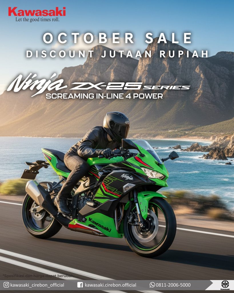 Bulan Oktober ini, Kawasaki Cirebon menghadirkan kejutan spesial untuk para pecinta kecepatan dan adrenalin! Nikmati DISKON JUTAAN RUPIAH untuk motor sport legendaris — Kawasaki Ninja ZX-25R Series! 🚀 Motor ini bukan sekadar kendaraan, tapi simbol dari power, precision, dan passion.Ditenagai oleh mesin 249,8cc In-Line 4 silinder, Ninja ZX-25R menghadirkan suara khas “screaming” yang begitu memukau, […]